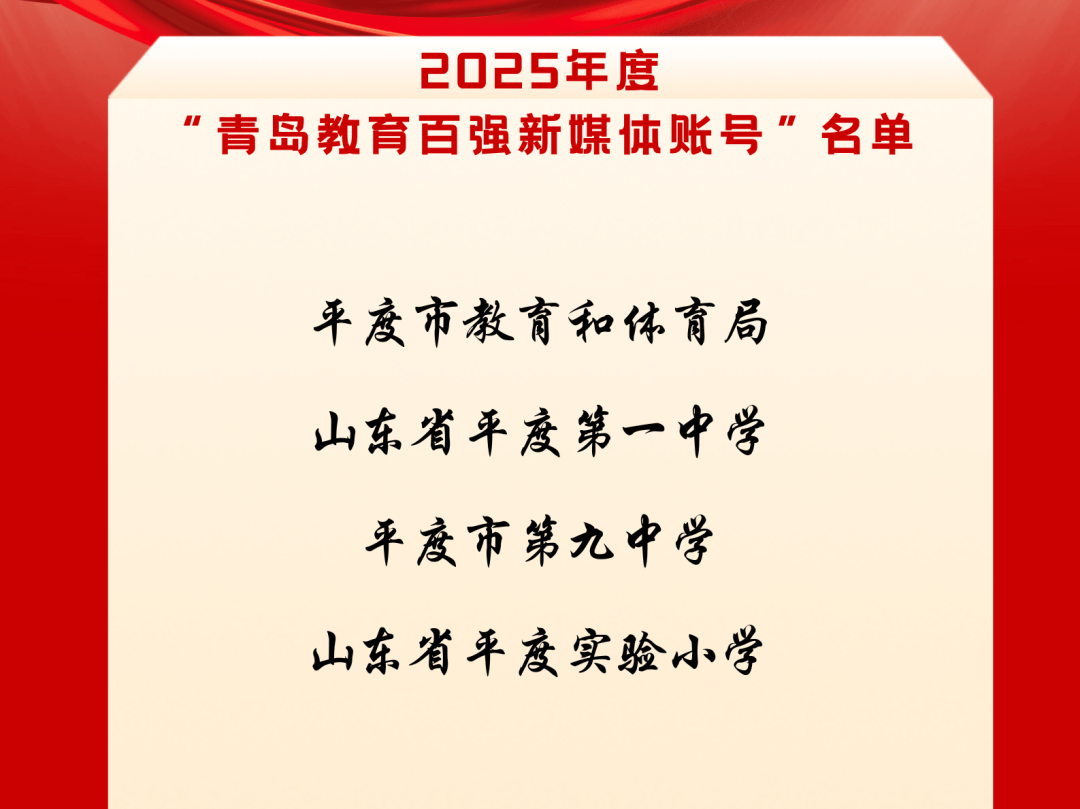 43.2025年8月 学校微信公众号被青岛市教育局评为“青岛教育百强新媒体账号”。