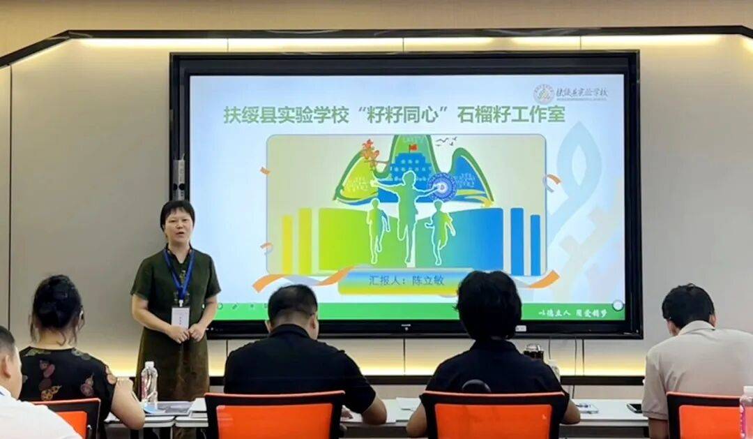 扶绥县实验学校“籽籽同心”石榴籽工作室进行教学设计答辩。崇左市教育局供图