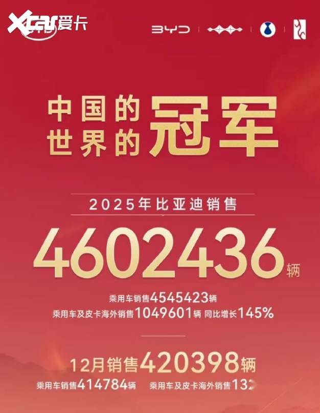 2025年各大车企销量公布,毫无悬念,比亚迪又是自主品牌中的领头者。而比460.24万辆全年销量更值得惊喜的是其226万辆纯电销量,这意味着比亚迪登顶了全球纯电销冠。以往被特斯拉占