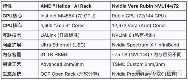 为了更直观地理解这场对决,我们将Helios与英伟达的NVL平台进行了详细对比: