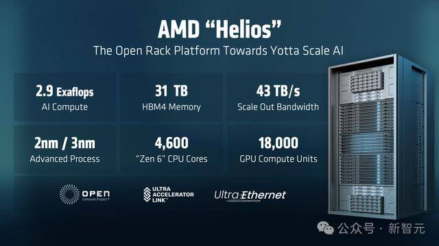 如果说英伟达的NVL72是一座封闭的黑色方尖碑,那么Helios就是AMD试图构建的「巴别塔」——一座由全人类(除了英伟达)共同建造的高塔。