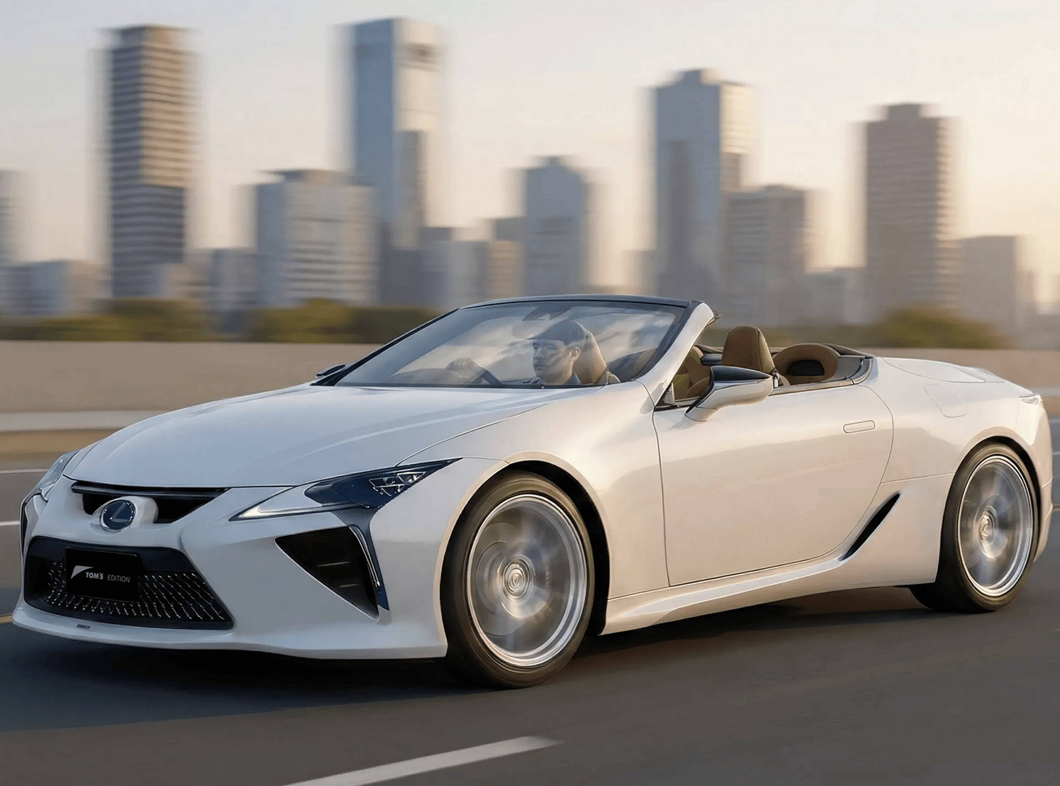 来到车身侧面,雷克萨斯LCToms Edition是最让人心动的地方。修车的车身配备了可折叠的硬顶敞篷/软顶敞篷,与白色的车漆形成了鲜明的撞色对比。两个无边框车门搭配着两侧隐藏式门把手,让车身变得更加优雅、流畅。配备21英寸的锻造Y字形轮圈,匹配了米其林的245/40 R21(前轮)、275/35 R21(后轮),强调抓地力和高速稳定性。匹配了338mm的碳陶瓷复合刹车盘、308mm的碳陶瓷复合刹车盘,并进行了低趴处理。尺寸方面,这台雷克萨斯LC Toms Edition长宽高分别为4770*1920*1345mm,车身轴距2870mm,该车采用双门两座的轿跑设计。