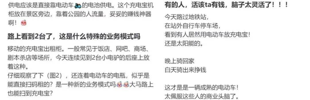 据悉,该模式在广东地区尤为流行,除深圳外,汕头市区不少路段也出现了类似的电动车。据汕头电视台报道,在金环路、龙眼南路等人流密集的地方都可以见到搭载充电宝的电动车。