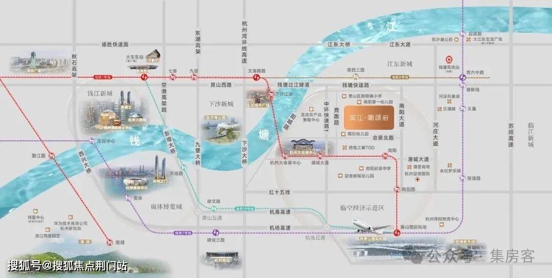 潮颂府位于大会展中心周边1公里的核心区域,牢牢占据临空经济示范区核芯,不仅远见板块崛起,其交通优势更是堪称“王炸”,将杭州繁华版图紧密缝合。
