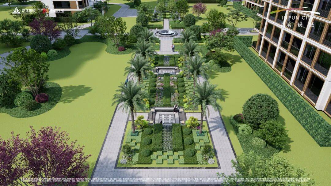滨纷十境:艺术花街、双景观水池、约2.4公里24节气环形跑道、六感高尔夫花园、摩登剧场、林下多彩花园、五大滨纷儿童乐园、活力运动场(网球场,羽毛球场,五人制足球场,完整篮球场,半篮球场,乒乓球场地)、健身活力场地、帐篷营地等