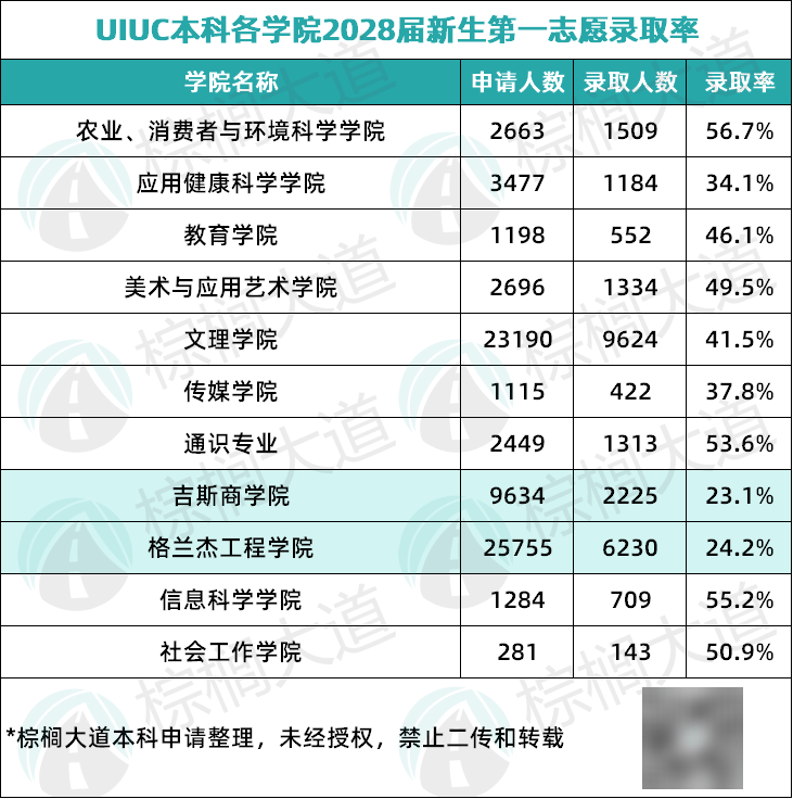 其次,UIUC采取分学院录取,不同学院申请难度差距悬殊,其中商学院、工程学院竞争非常激烈。