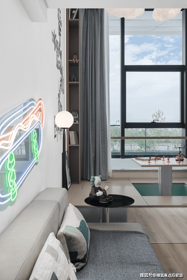 莹白的纱窗,如一缕轻柔的光笼罩住年轻的时光和时光中不舍的梦。透过那层朦胧的纱,光影投射于原木桌面,有护眼功能的台灯,侧看像一条迂回的线,像一弧月、一道江、一潮汐,涌动着照亮青年艺术家的心。