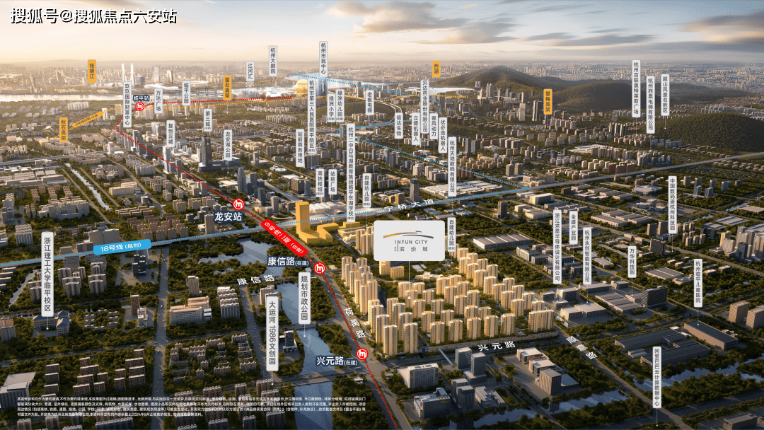 滨纷城的“先天优势”,在于其对东湖新城核心的精准占位。作为杭州“城东新中心”战略的重要支点,东湖新城正以“产城融合”之势快速崛起——西侧及南侧紧邻规划临平北站综合体,未来将与北站协同,成为板块商贸、交通、服务的核心载体;而项目本身所在的核芯区,已吸引了产业、人口、资源的加速聚集,居住价值随城市发展持续攀升。