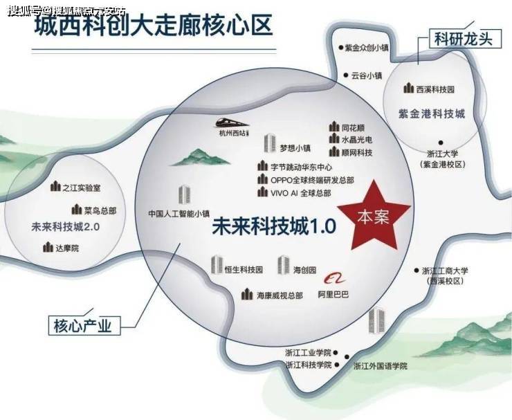 项目雄踞杭州未来科技城核心腹地,地处城西科创大走廊东端起点,与阿里巴巴全球总部、梦想小镇等产业地标形成黄金三角辐射圈。作为区域产业升级的战略支点,项目深度融入杭州“第三中心”发展脉络,依托城市西进战略红利,汇聚数字经济、人工智能、生命健康等前沿产业资源,为企业构建高能级发展平台。
