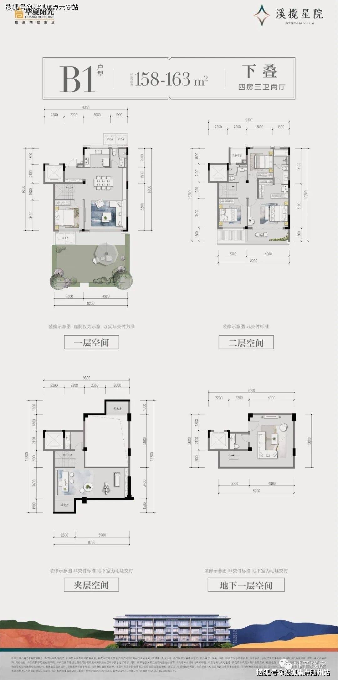 建面约158~163㎡下叠:地下室主题空间打造/餐客连厅/奢华主卧套房/独立三房