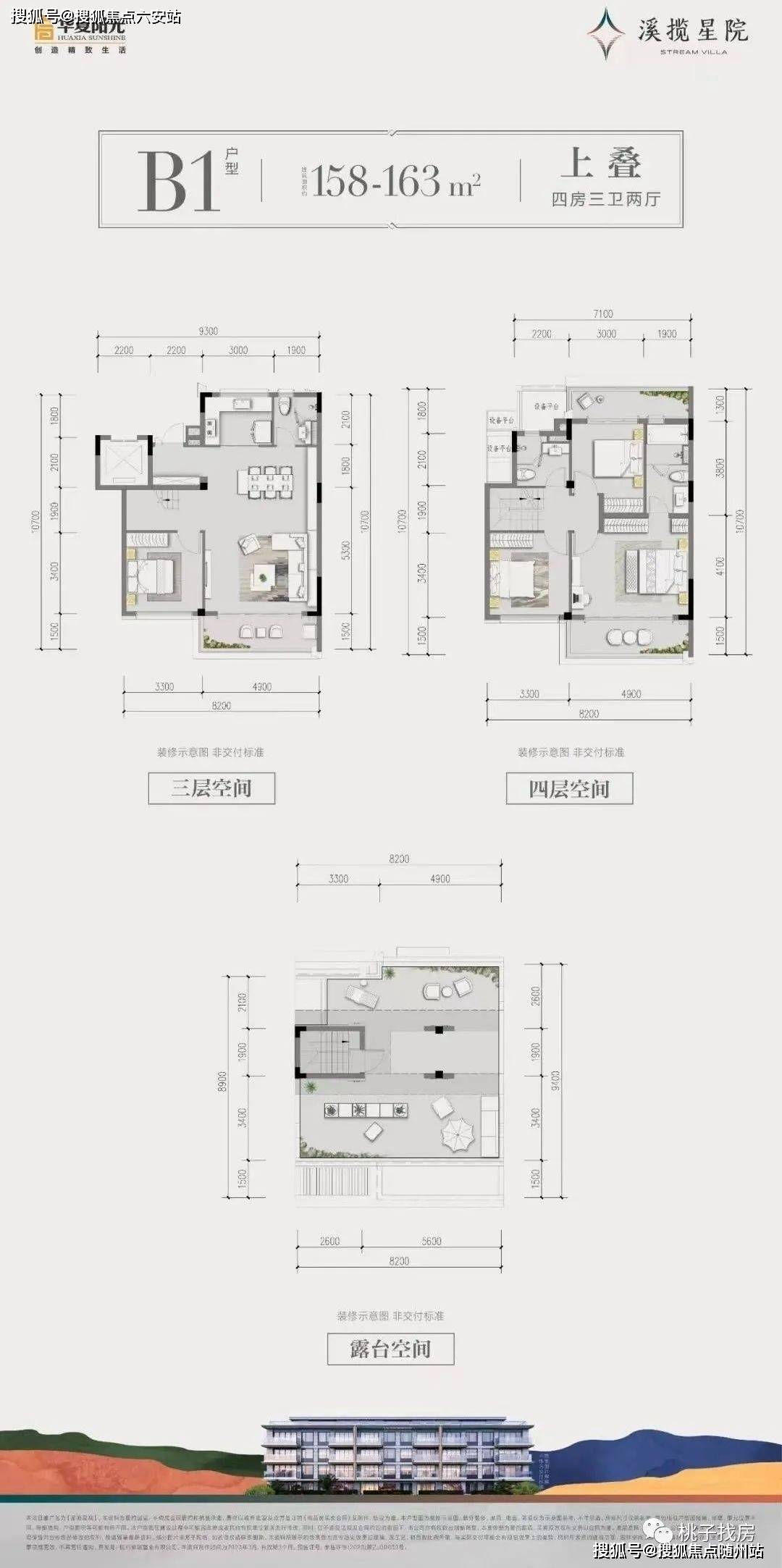 建面约158~163㎡上叠:顶层景观阳台/餐客一体连厅/套房式主卧/舒奢三卫设计