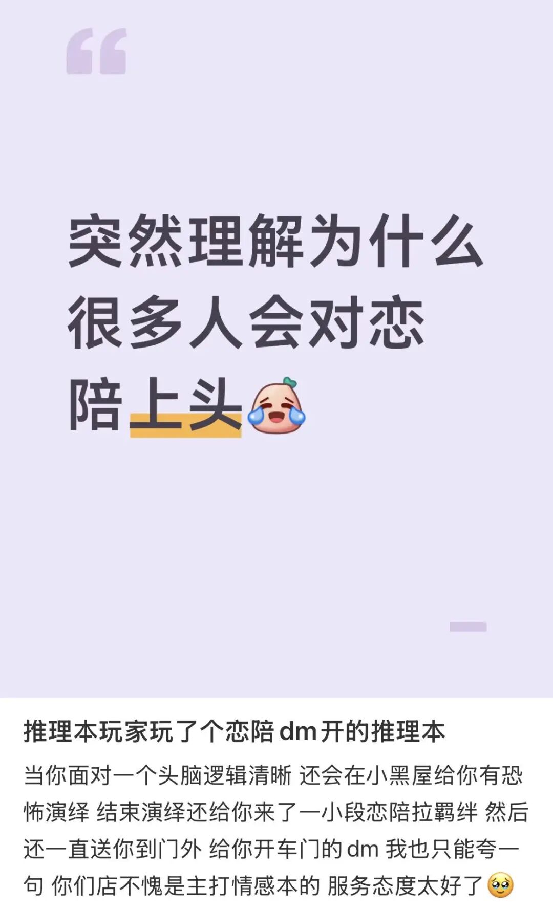 一是通过打榜抢到车位、成为车头(组织一场剧本杀的人),既能选择自己心仪的角色,也能指定喜欢的恋陪DM,实现“沉浸式贴贴”;