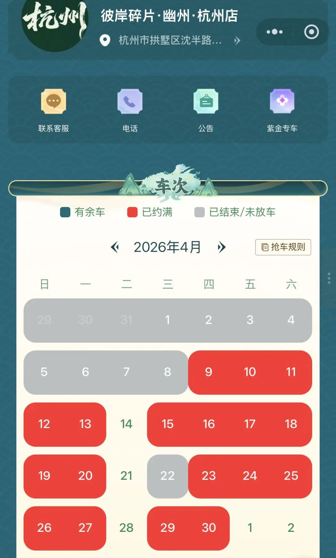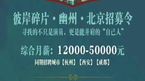 目前,“彼岸碎片幽州剧场”已在北京、杭州、成都、西安各布局一家分店,每家店每天承接2车玩家(即两场),每月共60车。这意味着,每个城市每月最多有600个玩家能抢到“车位”。