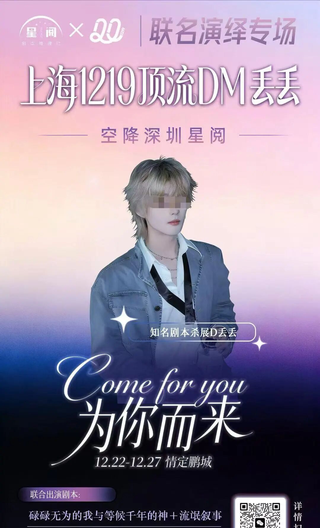这些顶流DM会被外地的剧本杀店邀请出演“专场”或“限时入驻”,类似偶像的全国巡回见面会。