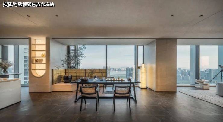 约21米的横向面宽撑开城市画框,钱塘江景尽收眼底;约180方的会客空间如海绵般可塑,从孩子们的游乐场到太太的茶话会,再到男主人的商务宴请,满足各式所需。