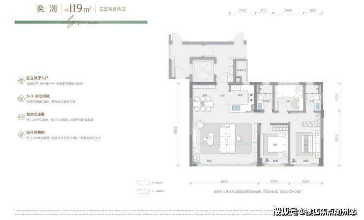 • 类独梯入户:专属电梯厅营造归家仪式感,打造私密尊崇的过渡空间,让每次归家都优雅从容• 类方厅阔境:客厅餐厅厨房一体化设计,营造开阔通透的空间感,提升居住舒适度