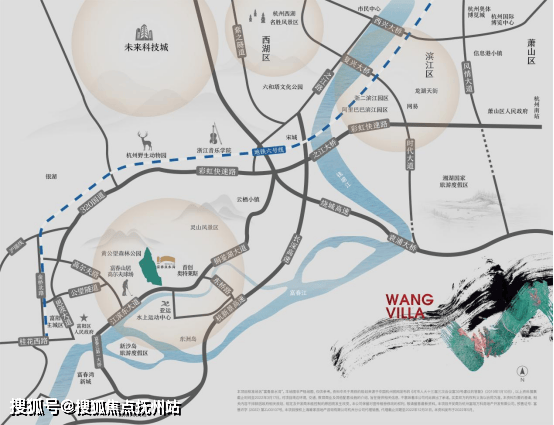 项目位于杭州稀缺的背山面水之地,依偎黄公望森林公园南麓与富春江水之间,距离滨江区仅约20公里,直线距离西湖风景区、钱江新城、钱江世纪城均约为25公里,完美置身于杭州半小时经济生活圈内。