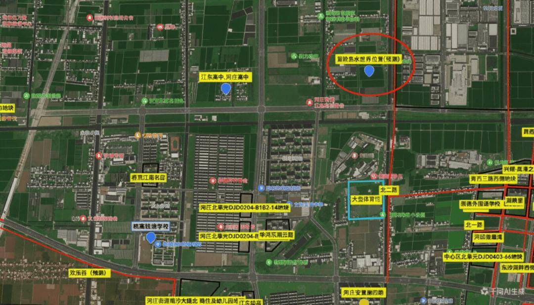 根据此前网传消息,项目大致位于钱塘区大江东片区的河庄街道江东村一带。也有网友表示,“位于云上澜苑东北面,且已经完成了征地拆迁”。