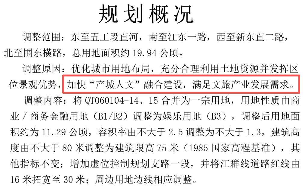 公示信息显示,此次调整的原因是,加快“产城人文”融合建设,满足文旅产业发展需求。